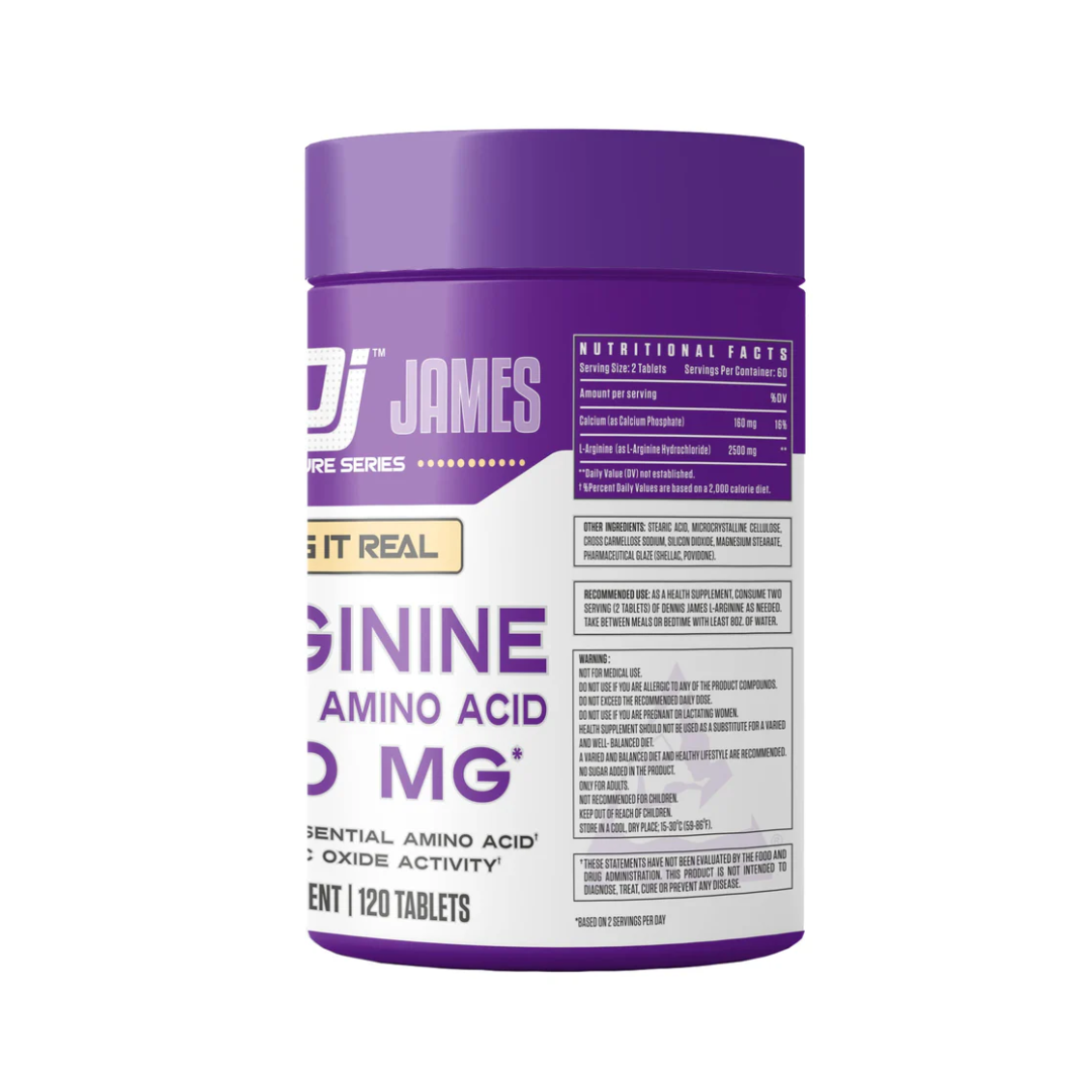 Dennis James Signature Series L-Arginine 5000mg. This high-quality formula is designed to help you build lean muscle mass and improve your overall strength and endurance. L-Arginine is an essential amino acid that is critical for a number of bodily functions, including muscle growth and repair. With 5000mg of L-Arginine per serving, this supplement provides a potent dose of this important nutrient to support your fitness goals. One of the key benefits of L-Arginine is its ability to increase nitric oxide production in the body, which can help to improve blood flow and oxygen delivery to your muscles during exercise. This can result in improved endurance and reduced fatigue, allowing you to push harder and longer during your workouts. In addition to its effects on endurance, L-Arginine can also help to promote muscle growth and strength by reducing fat stores and supporting muscle protein synthesis. This makes it an ideal supplement for anyone looking to build lean muscle mass and improve their overall physical performance. With Dennis James Signature Series L-Arginine 5000mg, you can take your workouts to the next level and achieve your fitness goals faster than ever before.