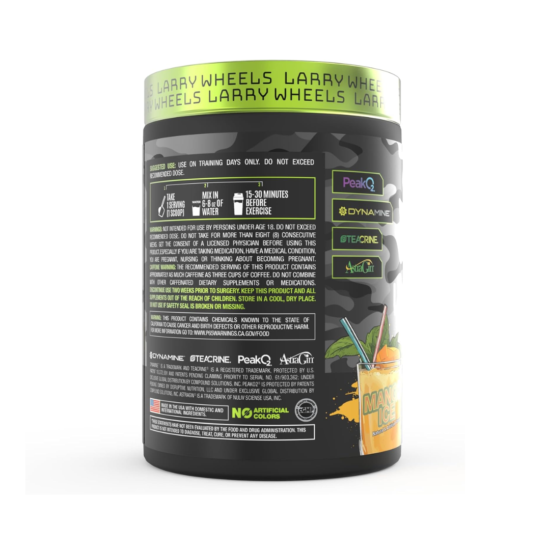 Larry Wheels’ PR Pre-workout is a powerful supplement designed to help you reach your fitness goals faster and more effectively. It contains a transparent formula with ingredients like Dynamine, Theacrine, and Caffeine Anhydrous to improve mental clarity, focus, and energy levels. The pre-workout also includes Beta Alanine and Citrulline Silicate to enhance muscle strength, performance, and pumps. It helps reduce fatigue and improve recovery rate. Key ingredients like AstraGin, PeakO2, and Huperzine A provide additional benefits such as boosting nutrient absorption, supporting recovery, and enhancing cognitive function. The Mango Ice flavor is described as having a subtle mango taste with a touch of sweetness. The powder mostly dissolves with stirring, but some particles may remain. Overall, Larry Wheels’ PR Pre-workout is a comprehensive supplement aimed at optimizing athletic performance, energy, focus, and recovery.