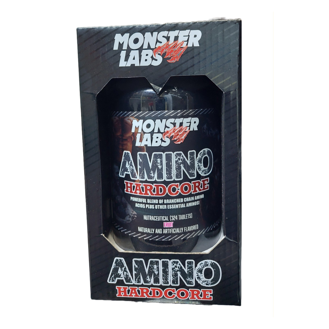 Monster Labs Amino Hardcore is a powerful blend of branched-chain amino acids (BCAAs) and other essential amino acids. It is scientifically formulated with high bioavailability to provide the crucial building blocks for protein synthesis and muscle tissue growth. Key features of Monster Labs Amino Hardcore: Provides L-leucine, L-valine, and L-isoleucine (BCAAs) along with other essential amino acids Enhances physiological processes related to energy, recovery, muscle/strength gains, fat loss, mood, and brain function Helps support a hardcore bodybuilding regimen Available in 324 or 325 tablet containers Comes in fruit and coffee flavors Monster Labs Amino Hardcore is a comprehensive amino acid supplement designed to support muscle growth, recovery, and overall athletic performance for bodybuilders and athletes.