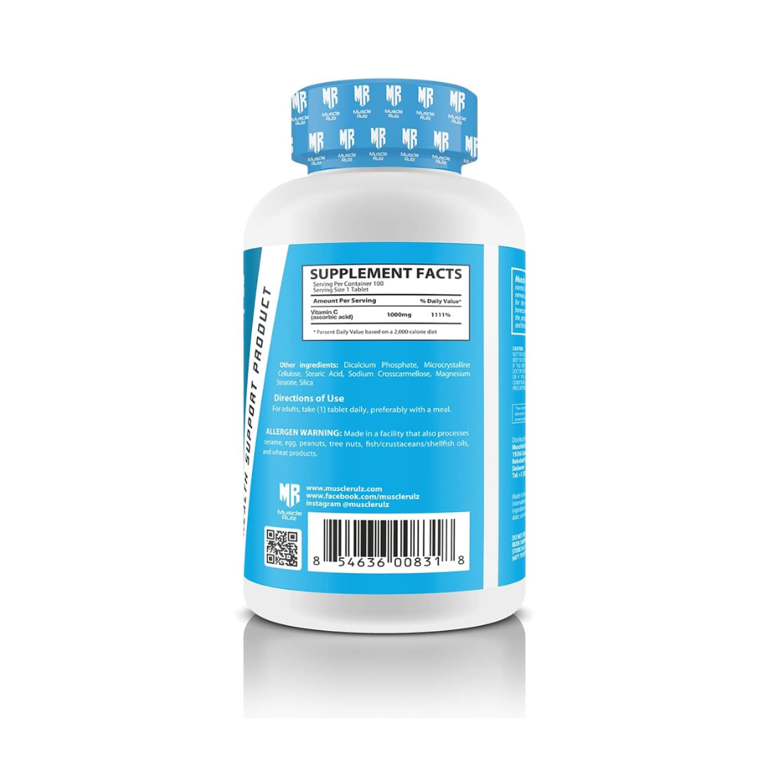 Muscle Rulz Vitamin C-1000 referred to as L-ascorbic acid, maybe a vitamin. Antioxidant-rich vitamin C is well known for promoting immune function and protecting cells from free radical damage. Vitamin C is additionally a crucial antioxidant that will assist your body with the production of collagen, L-carnitine, certain neurotransmitters, metabolism of protein, and the regeneration of other antioxidants within the body (like vitamin E). Vitamin C is one of the biggest immune system boosters of all. vitamin C may include protection against immune system deficiencies.